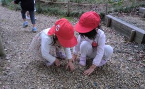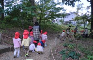 まだ紅葉には早かったですが、それでも赤い葉っぱを見つけたりドングリをさがしたり、木切れを拾ったりして帰ってきました。