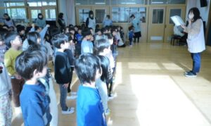 園長先生からは、2学期からの目標で『あいさつをしよう』に加え、3学期は『話をしっかり聞こう』という目標を話してくださいました。