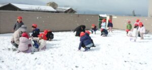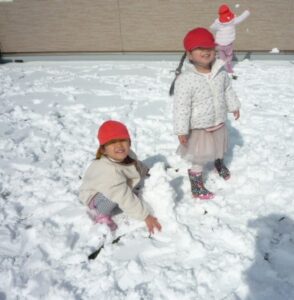 8日の夜から雪が降り、こども園の園庭や屋上に見事に積もりました。この時期だから経験できる雪遊び!絶好のチャンスです!