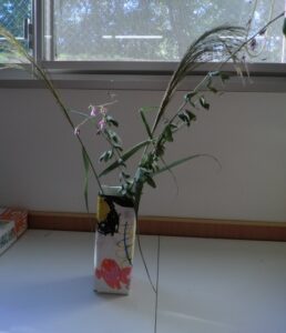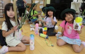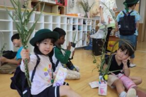 今日は十五夜。子どもたちは牛乳パックの周りに十五夜の絵をかいて、ススキを入れる入れ物を作りました。その入れ物にススキとこども園に咲いている萩の花を入れて持ち帰りました。今日は夜の空にきれいなお月様が見えるといいですね。